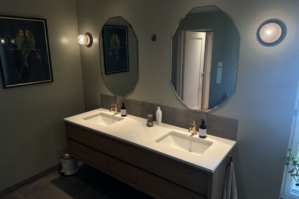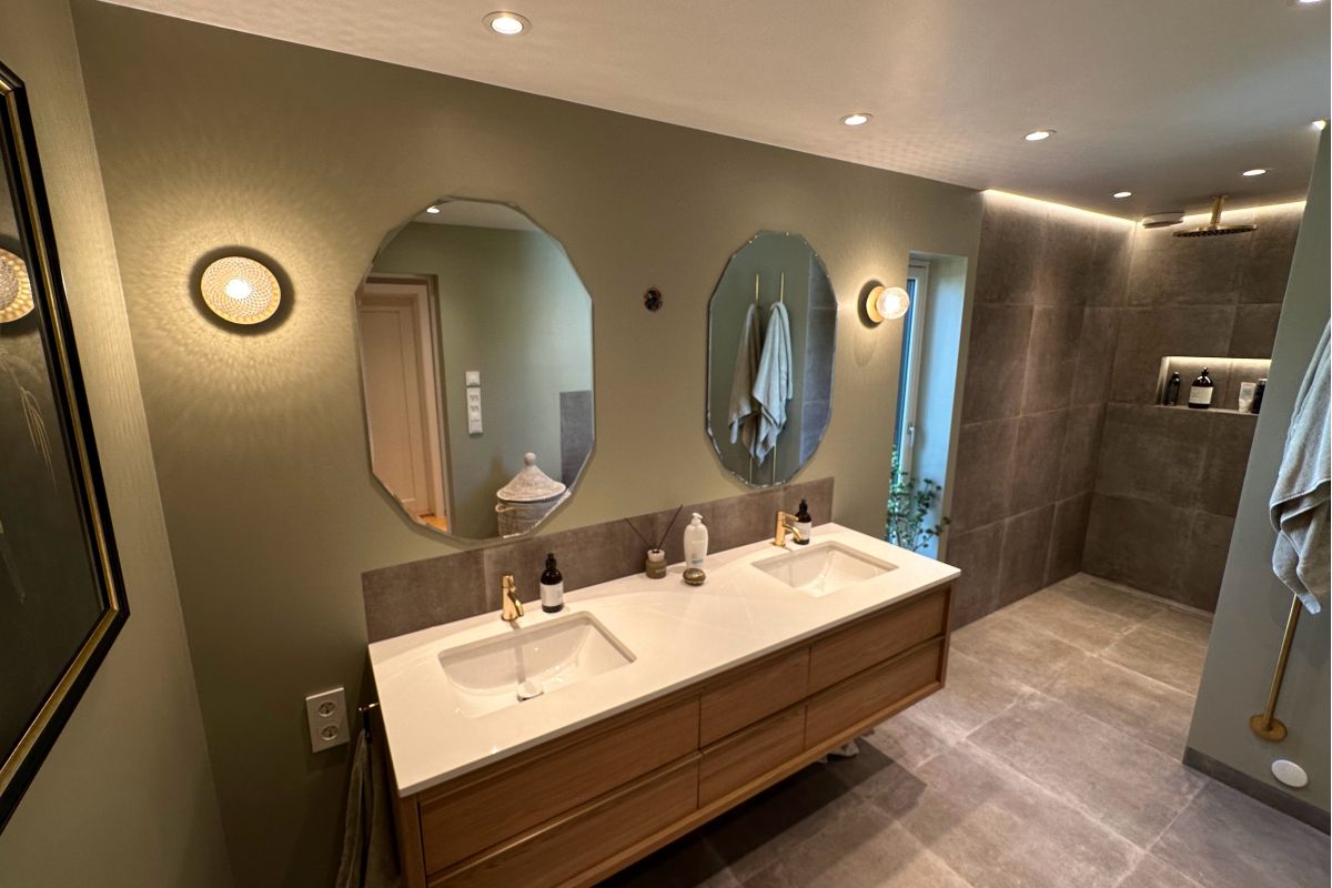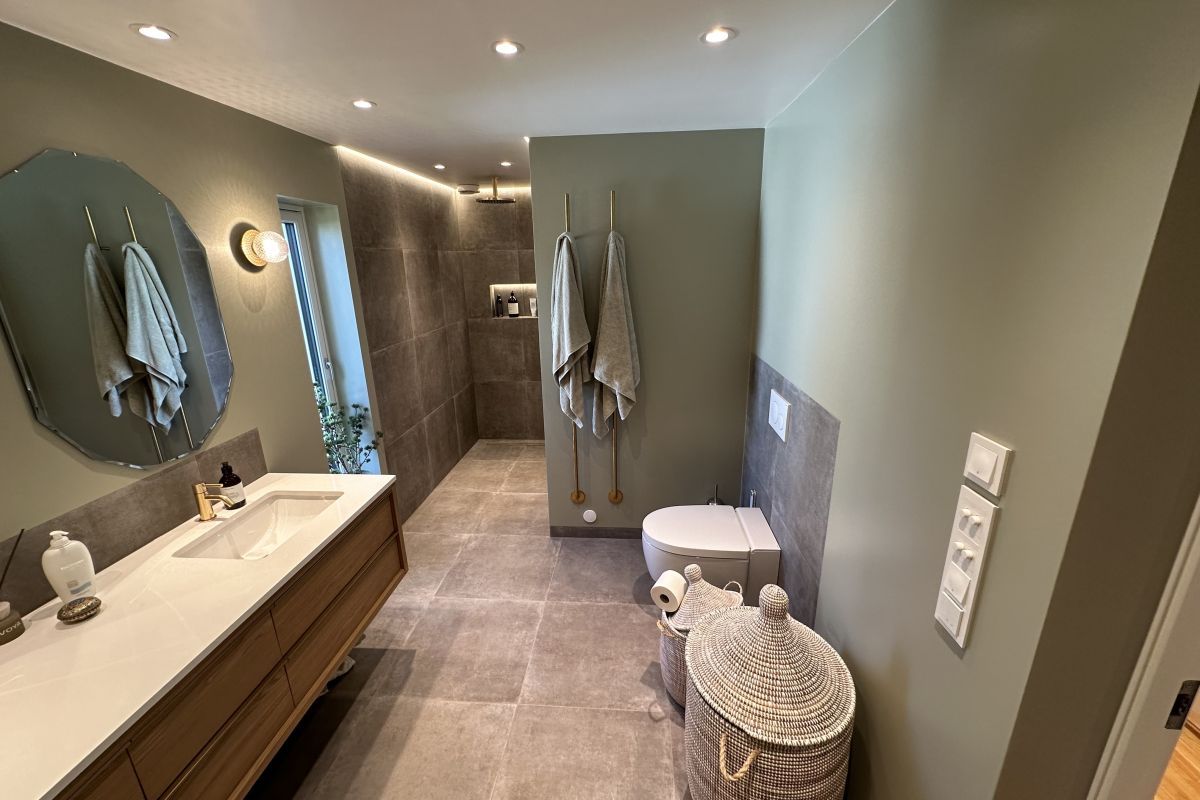 I forbindelse med en større boligrenovering på Grefsen ønsker vi å dele det som ble prosjektets høydepunkt – et svært eksklusivt bad. Med dobbel servant, kvalitetsarmatur, eksklusive fliser, skreddersydd dusjløsning og vegghengt spyletoalett er dette et rom der hver detalj er nøye planlagt. For å få det perfekte resultatet måtte alle fag samarbeide ekstra tett gjennom hele prosessen.