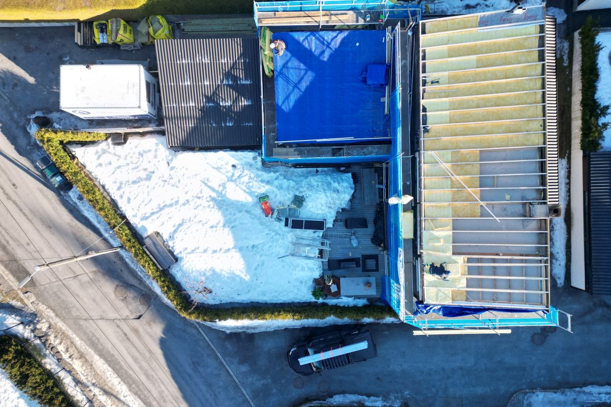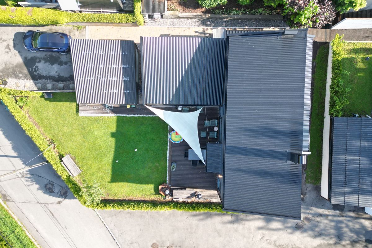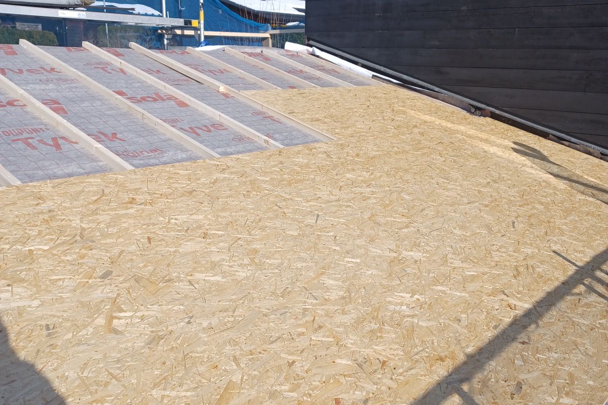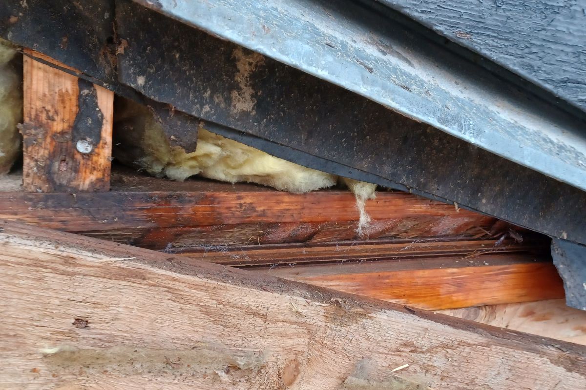 En fast kunde tok kontakt med oss etter å ha oppdaget vannlekkasje fra taket. Vi åpnet opp konstruksjonen og lokaliserte områdene med fuktskader. Skadene var omfattende nok til at det lønte seg å bytte hele taket. Vi bygde det opp på nytt med isolasjon, gjennomgående luftespalter for god ventilasjon, nytt undertak, sløyfer og lekter. Til slutt monterte vi nye takplater, beslag, renner og nedløp.