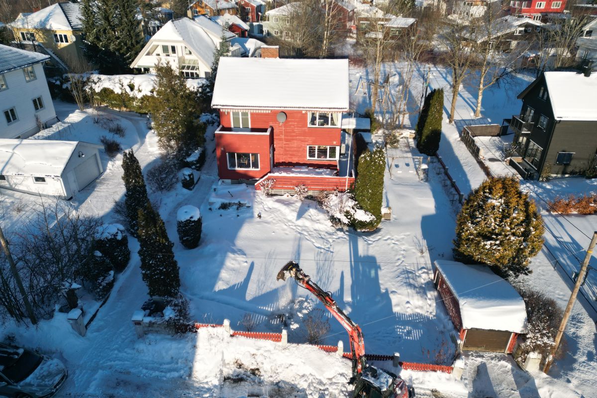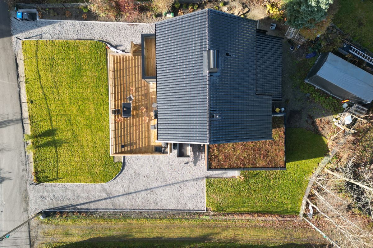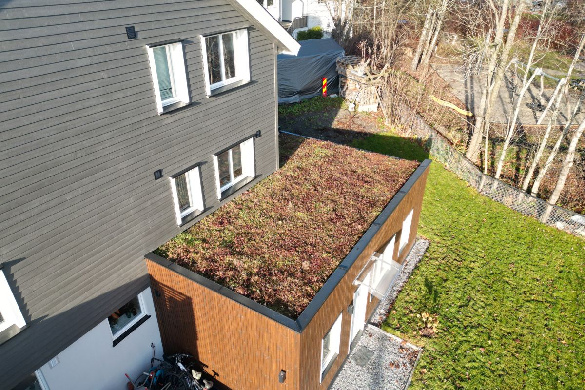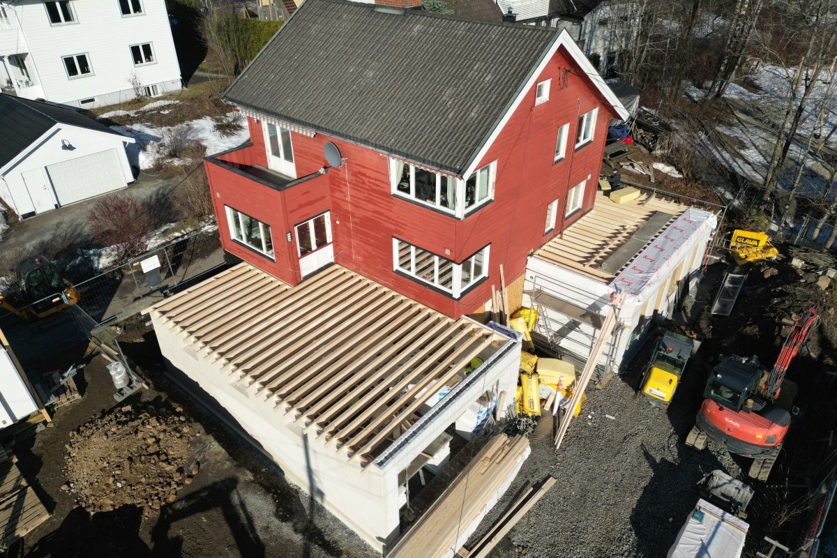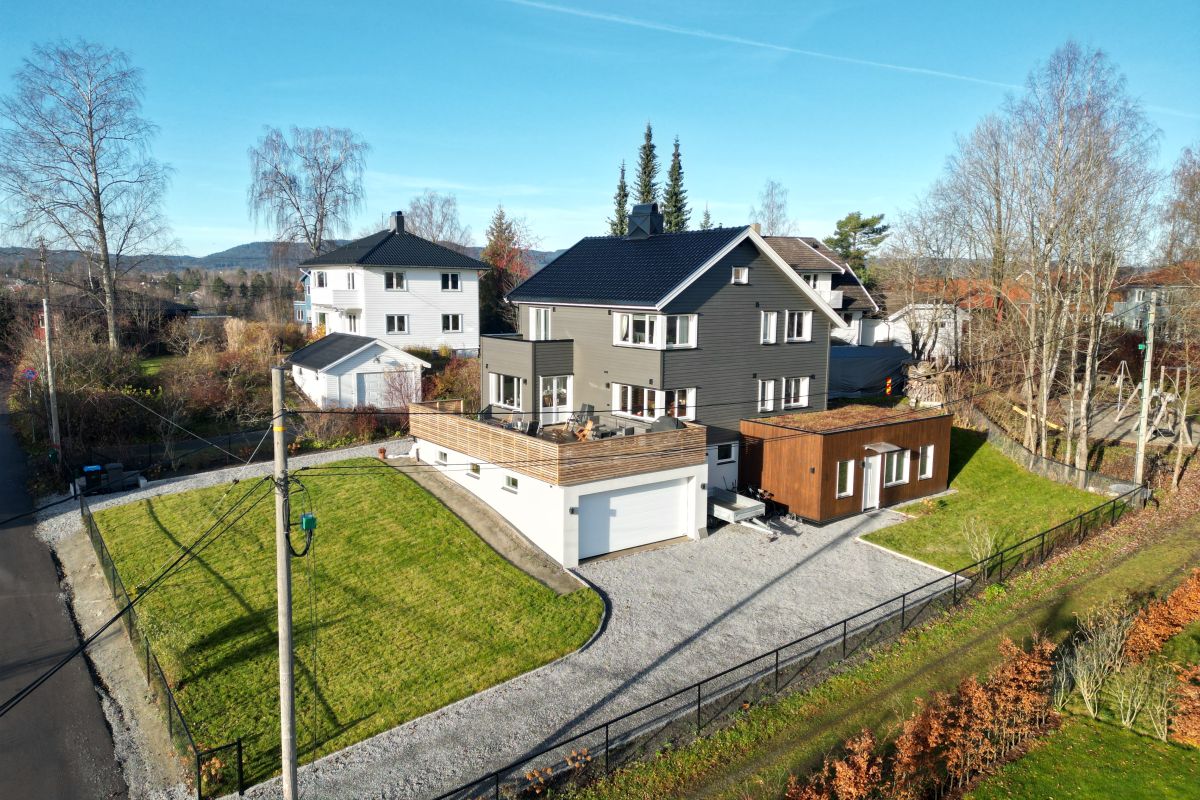 Her på Røa har vi gitt denne eneboligen en solid oppgradering fra grunn til topp. Vi gravde ut deler av kjelleren og bygde en fullverdig garasje, samtidig som vi oppførte et tilbygg med egen hybel og separat inngang. På toppen av garasjen etablerte vi en stor terrasse med fantastiske solforhold – et perfekt uteområde med god utsikt. Fasaden ble etterisolert, fikk nytt panel og flott farge. Vi la ny takstein, planerte hagen og bygde en ny innkjørsel som gir enklere adkomst. Resultatet er bedre komfort, praktiske løsninger og et helhetlig løft for eiendommen.